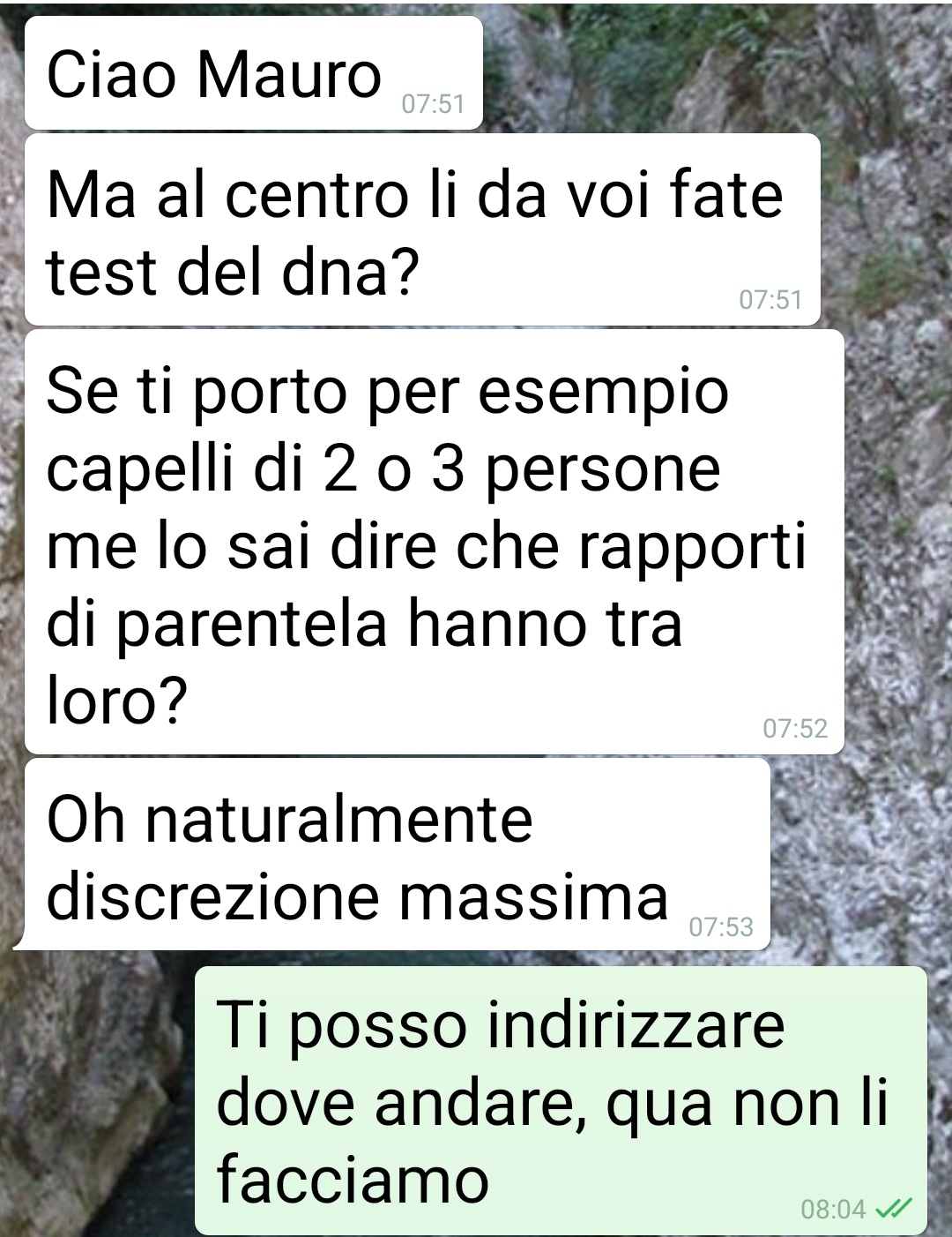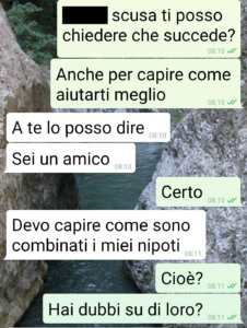 “Un mio amico mi ha scritto perché ha grossi dubbi sulla paternità dei nipoti. Voleva un aiuto pratico, essendo io “del mestiere”. Situazione parecchio spinosa.