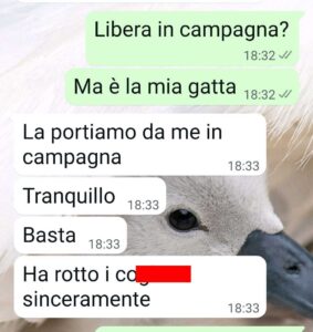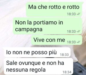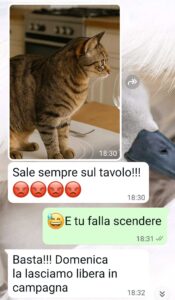 Io non so come la pensate voi, ma io il mio gatto non lo abbandono. Ma questa scelta non è senza conseguenze. Leggete la chat per vedere quanto la mia ragazza sia convinta di essere nel giusto.