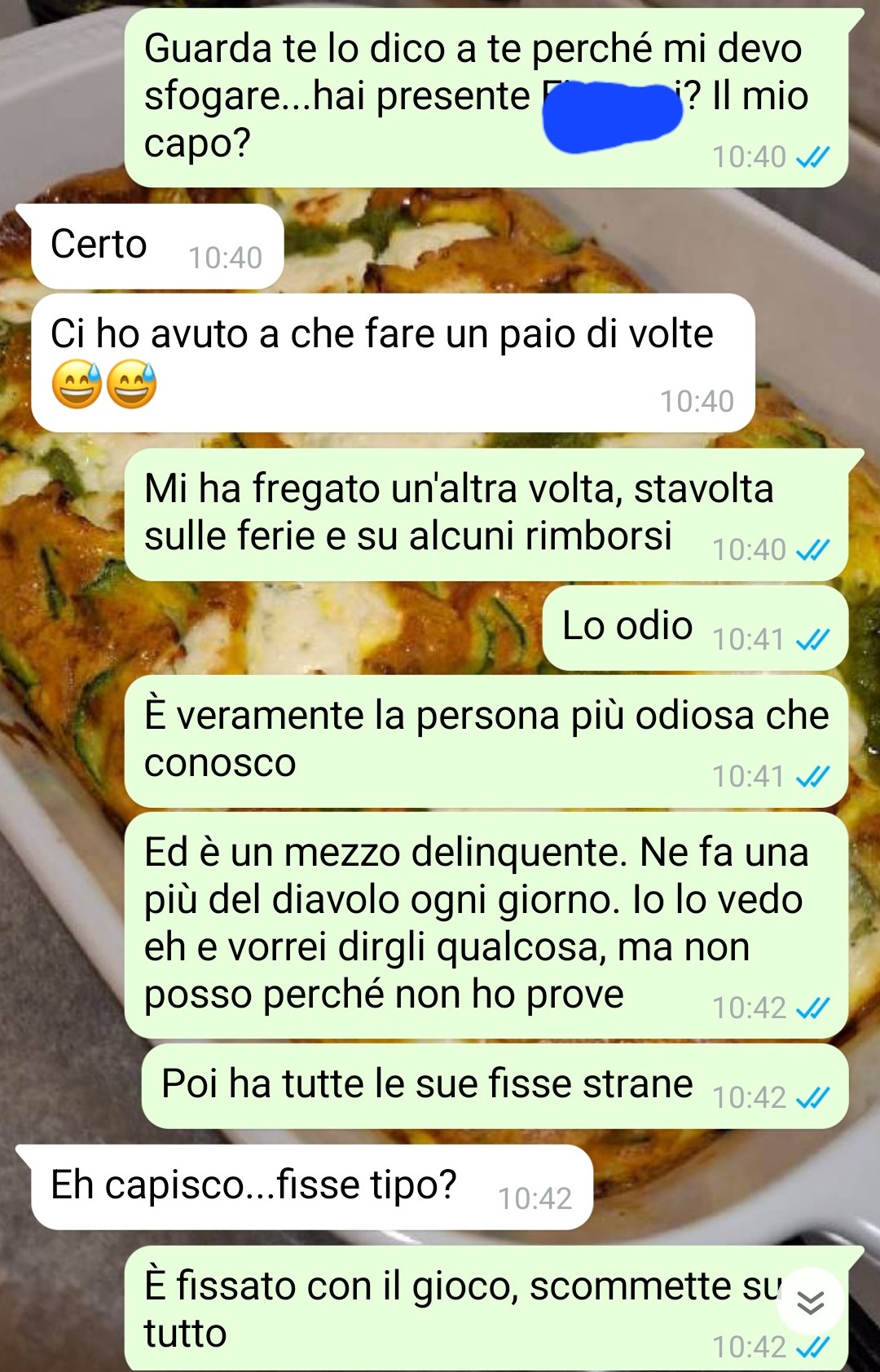 “Non sono una persona ingenua, sono una persona semplice e genuina, che è ben diverso. Sono una persona che ama dire quello che pensa, che ama sognare, ma che soprattutto odia le ingiustizie. Odio le ingiustizie nel campo dell’amicizia, e capirete perché, e odio le ingiustizie nel campo del lavoro, come dovrebbero odiare tutti. Lavoro in questa azienda e ho un capo molto particolare. Di base fa il simpaticone, a volte ti da del lei, ma spesso ti da del tu, a volte scherza con te e ti permette di essere più informale e colloquiale, a volte è rigido e severo. Tutto normale? Forse all’apparenza, ma in realtà no. Lui è il peggio del peggio. Una persona infima, che vuole metterti in difficoltà a tutti i costi, che se ne approfitta di te, che ti mette all’angolo, che fa tutto il possibile per renderti la vita un inferno, non pensando ai tuoi diritti e calpestandoli. E poi ha un vizio, un pessimo pessimo vizio. Detto questo, ne stavo parlando con Diego, un amico, e mi stavo sfogando quando lui (lui è stato e questo lo sottoscrivo a chiare lettere!) mi ha fatto capire che c’era un modo per prendermi una rivincita. Ma sono stato imbrogliato, ho ragione, no?”