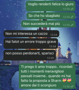 Abbiamo vissuto momenti bellissimi insieme, abbiamo costruito cose vere, ci siamo amati con una profondità che non ho mai provato prima. E poi… ho rovinato tutto. Ho fatto un errore enorme. Il tipo di errore che ti sveglia di notte col cuore a mille e lo stomaco in frantumi.