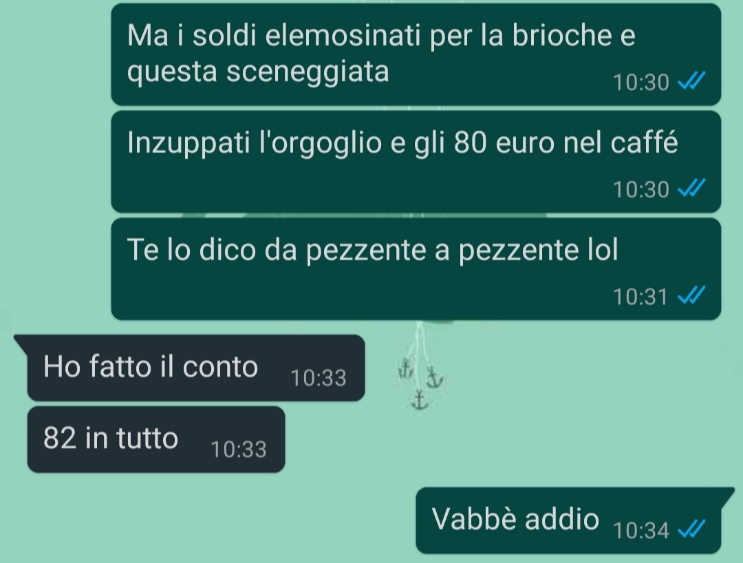 Leggi le ultime storie La decisione del Don Napoli Vs Thailandia La comunione di mio figlio I soldi per l’affitto In disaccordo Progetto di famiglia La pizzetta Divisione dei compiti La mia regina – Parte 2 Il braccio rotto Torna a casa Priorità familiari Emma Cane abbandonato I social controllati dall’ex Il bonifico segreto – Parte finale La porta a soffietto Rolex a rate Il messaggio cancellato Il grafico