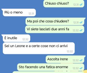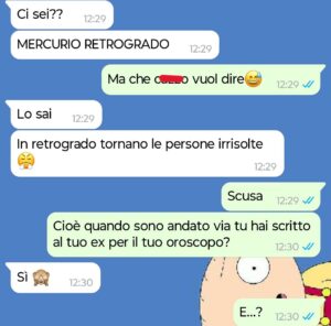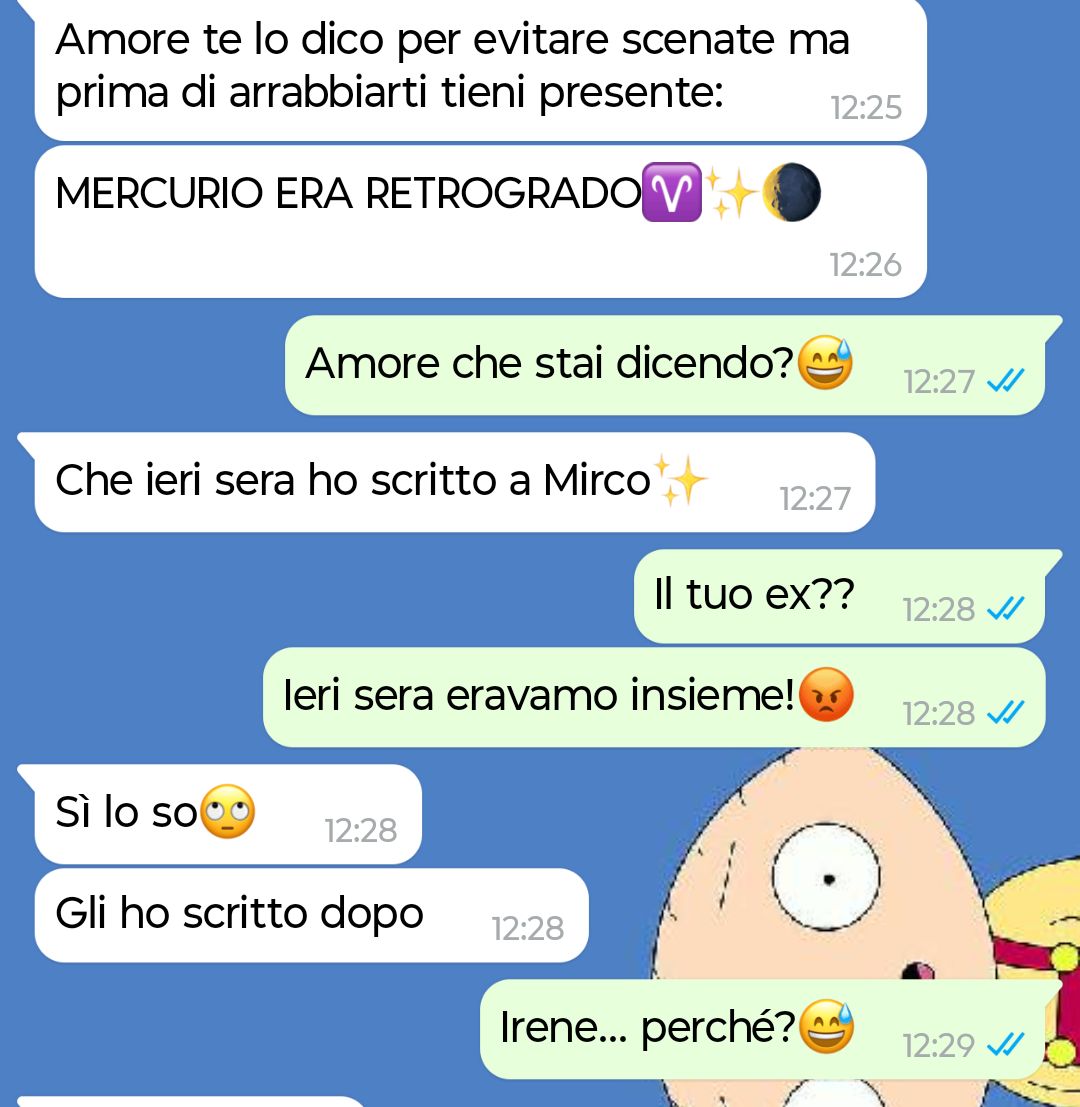 “Mi chiamo Marco, ho 34 anni e lavoro come commerciale. Quando Irene mi ha scritto che dovevamo parlare, ho capito subito che non sarebbe stata una conversazione leggera. Non perché fossimo in crisi, ma perché quando una persona ti prepara al “resta calmo” significa che ha già fatto qualcosa di imperdonabile. Pensavo a una bugia, a una mezza verità, a una di quelle cose che fanno male ma che si possono ancora discutere. Non pensavo certo a un pianeta. Mi ha detto che aveva scritto al suo ex. Poi che era passato da casa sua. Ogni frase era accompagnata da una spiegazione astrale, come se il cielo fosse entrato di forza nella nostra relazione e avesse deciso al posto suo. Mercurio retrogrado, energia instabile, momento particolare. Nessuna volta ha detto “ho sbagliato”. Nessuna volta “scusa”. In quel momento non mi sono sentito tradito soltanto da lei, ma preso in giro. Come se il dolore che stavo provando fosse un mio problema di comunicazione, non una conseguenza delle sue scelte. E ho capito che il vero problema era il fatto che, davanti a me, non c’era una persona pronta a prendersi la responsabilità di quello che aveva fatto.”