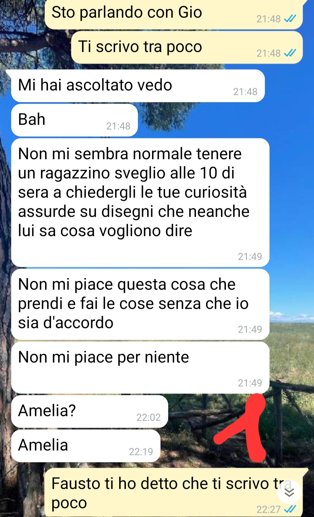 “Spoiler: Sì, mio figlio Gioele ha disegnato mio marito con l’amante.