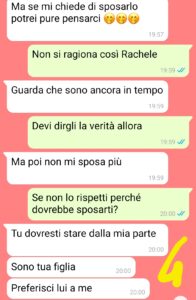 “Pensavo che la situazione fosse già grave quando mia figlia mi ha fatto capire che stava tradendo il suo fidanzato con un suo amico, ma quando proprio il suo fidanzato mi ha confessato di volerle fare la proposta di matrimonio ho creduto che fosse tutto irrecuperabile. Non avevo idea di quello che sarebbe accaduto. Se prima sentivo di poter fare qualcosa per sistemare la situazione o almeno aiutare Riccardo, adesso mi sento totalmente impotente, ho il cuore spezzato per la cattiveria di mia figlia e ho capito che purtroppo il suo amante si sta comportando, se possibile, anche peggio di lei. Da madre non riesco a girarmi dall’altra parte, ma allo stesso tempo non posso mettermi in mezzo. So solo che dopo aver riparlato con Riccardo ho fatto 2+2 e ho capito che quel ragazzo è così buono che tutti lo prendono in giro…vorrei dargli una mano ma non so proprio da dove cominciare…”