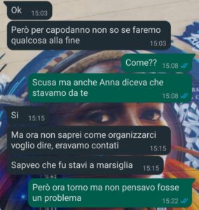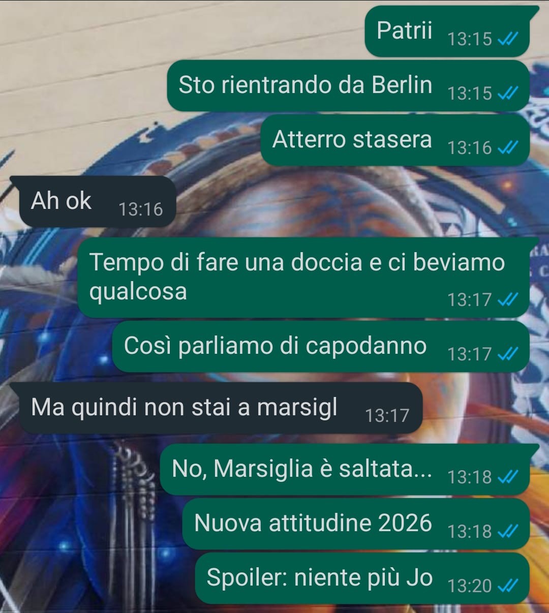 Quando sono partita per Berlino pensavo che al mio ritorno sarebbe stato tutto come sempre: un po’ caotico, un po’ scomodo, ma gestibile. Non immaginavo che un capodanno potesse trasformarsi in un processo, né che vecchie cose mai chiarite potessero riemergere come armi. Pensavo di tornare a casa. Invece stavo entrando, senza saperlo, in un terreno minato.”
