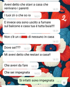 “Ciao SpunteBlu, prima di tutto mettiamo le carte in tavola: non sono certo la più fedele delle donne, non lo sono mai stata!! E che vi devo dire.. a me la monogamia sta stretta, mi annoio facilmente e così se capita.. che poi davvero: ma se io sto bene con una persona, se ci sto bene per tanto tempo e ci costruisco un rapporto duraturo, ma quella persona non riesce a darmi tutto quello di cui ho bisogno.. che male c’è alla fine se quel che mi manca lo cerco in un altro uomo?!? Cioè la persona perfetta non esiste: per quanto meraviglioso possa essere un partner avrà sempre un aspetto, una caratteristica, un.. qualcosa!!.. che non va bene!! Ok non che non va bene in generale, ma che non va bene per me!! Questo io l’ho capito abbastanza presto e così ho deciso di compensare prendendo al di fuori della coppia quello che nella coppia non potevo avere.. che alla fine è una cosa molto più logica di passare la vita a inseguire il mito del compagno (o della compagna!) perfetta, l’anima gemella che ha tutto e che, mi spiace dirlo, ma non esiste!! Purtroppo però a volte i miei partner sono gelosi.. anche se francamente io davvero non capisco questo atteggiamento.. leggete cosa è successo con Michele, un uomo che ormai frequento da un po’, pochi giorni fa..”
