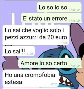 “La mia compagna ha la fobia per i colori, tranne per l’azzurro. Ogni mese vuole 600 euro in pezzi da 20…