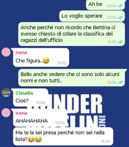 Ho solo lasciato che i messaggi scorressero, per capire con chi avevo a che fare. Colleghe o le solite bullette?