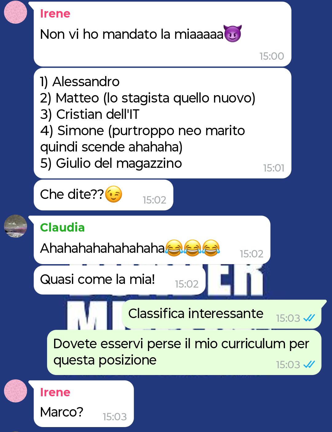Ho solo lasciato che i messaggi scorressero, per capire con chi avevo a che fare. Colleghe o le solite bullette?
