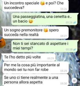 “Sono Rosanna e ammetto di essere una grandissima ingenua. Mi viene da piangere se ci penso e ci ripenso, perché queste cose si leggono su internet e si pensa sempre, ma come si fa a cascarci, come fanno le persone a non rendersi conto, finché non ci si ritrova dentro a questo genere di dinamiche e non si ragiona. Perché c’erano varie cose che razionalmente potevano farmici arrivare, ma ero talmente presa, talmente interessata alla persona che avevo davanti da non rendermi affatto conto di cosa stava succedendo. Quello che dovete sapere è che io ho 35 anni, sono una donna che stava per sposarsi e poi per un suo tradimento ci siamo lasciati, ma non è con il mio ex la storia, ma è per farvi capire che sono una persona molto scossa. Ho conosciuto questa persona, Daniele, uno che aveva la mia età, un modo molto garbato di fare e che rispettava i miei tempi di voler andarci piano dopo ciò che mi era successo. Ci siamo frequentati per quasi un anno, parlavamo al telefono, ci eravamo organizzati che vedevamo film e serie insieme e mettevamo play allo stesso momento e poi commentavamo al cellulare e tante altre cose. Poi è arrivato quel giorno e tutto è finito nel modo peggiore.”