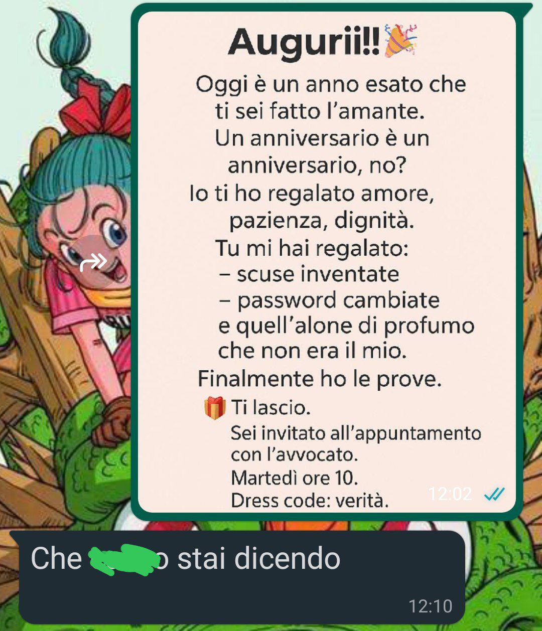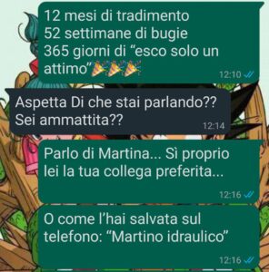 Lui intanto ti regala un anno di messaggi cancellati, spazzolini sdoppiati, orari che non tornano e fantasiose “riunioni del team marketing”.