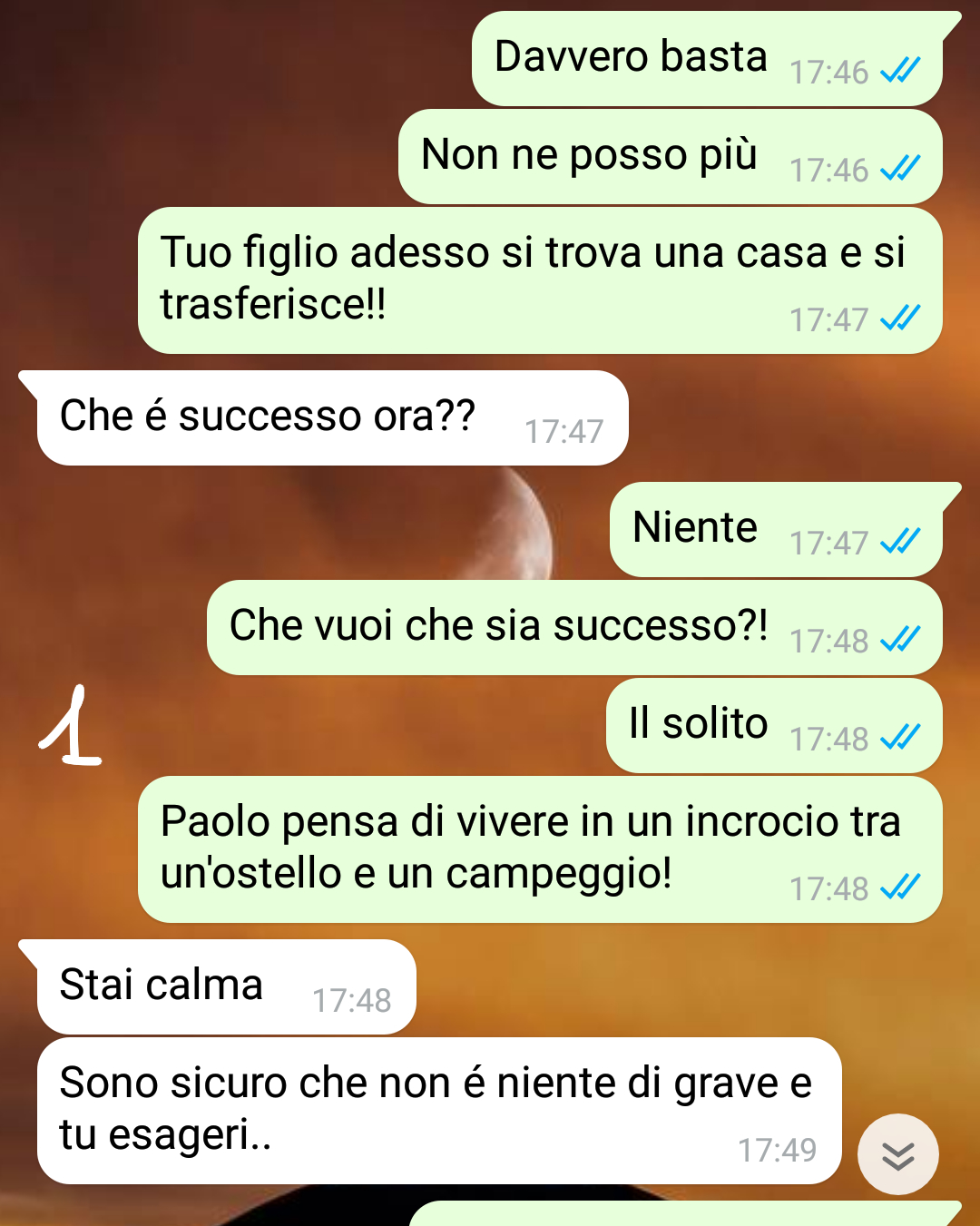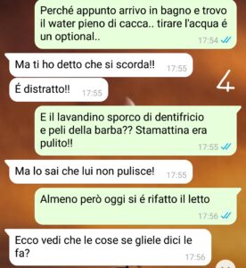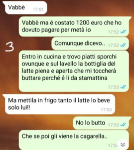 “Ciao SpunteBlu, mi chiamo Tatiana e praticamente faccio la colf in casa mia! Io ho un compagno che si chiama Rodolfo: ci siamo conosciuti al mare e abbiamo scoperto che vivevamo nella stessa città! Dopo un po’ abbiamo deciso di andare a convivere e, dato che Rodolfo viveva in affitto mentre io sono proprietaria, lui è venuto a stare da me. Devo dire che la convivenza è andata bene fin dall’inizio: abbiamo un modo di vivere molto simile e insieme stiamo proprio bene. Purtroppo l’anno scorso è successa una cosa che ha sconvolto la nostra vita e la nostra routine: il figlio di Rodolfo, Paolo, è venuto a vivere con noi! Rodolfo è divorziato e dalla sua prima moglie ha avuto un figlio, appunto Paolo. Ora la prima moglie di Rodolfo si è risposata lo scorso anno e ha colto la palla al balzo per buttare fuori di casa Paolo.. anche perché non lo sopportava più.. anzi a volte penso che si sia risposata solo per cacciare di casa il figlio!! E anche fosse così un po’ la capisco: Paolo è un coinquilino esasperante! Sporca, non collabora minimamente alle faccende di casa, mangia tantissimo ma non fa la spesa… e dove passa lascia un disastro in casa!! L’altro giorno la mia pazienza si è esaurita e sono sbottata…”