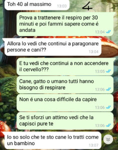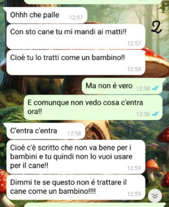 Tra gli aspetti del carattere di Matteo che stanno emergendo e che non sono proprio in linea con me c’è il fatto che lui non sopporta molto la mia Nancy: lui ha sempre sostenuto di amare i cani, ma in realtà la cosa non è affatto vero, anzi!! Recentemente il suo comportamento è diventato sempre più scostante quando si tratta di Nancy e addirittura ha iniziato a mostrarsi infastidito dell’affetto che io provo per lei!! Ora noi a luglio dovevamo andare al mare…”