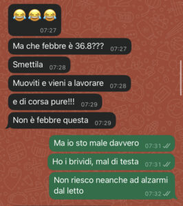 “Ciao pagina… sono amareggiato. Lavoro per un supermercato da un anno e sinceramente mi sono sempre trovato abbastanza bene… ma ultimamente le cose stanno cambiando. Hanno cambiato responsabile e questo uomo è veramente cattivo con tutti noi e fa storie per qualsiasi cosa. L’altro giorno stavo davvero malissimo e lui ha preso la cosa sul ridere… e rinfacciandomi cose assurde anche sui miei colleghi. Ma secondo voi è normale un ambiente di lavoro del genere? Io non so più come comportarmi. Quest’anno non ho neanche preso un giorno di ferie perché lavoravo lì da pochi mesi e non volevo fare una brutta impressione… ma dopo questa uscita che ha fatto non so come comportarmi. Delle volte ha ragione chi dice che il mondo del lavoro italiano fa schifo. Io sono giovane, ho 25 anni e dicono che noi giovani non abbiamo voglia di lavorare… ma non è vero!! Il problema è che ci trattano malissimo tutti e siamo sottopagati! Ho voglia di cambiare paese!