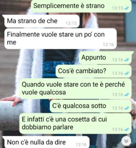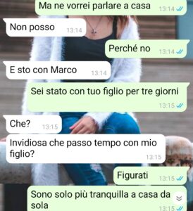 “Mai mettersi tra il proprio partner e suo figlio. Questo è un consiglio che mi sento di dare, anche se si ha completamente ragione. Ed è anche una cosa, una regola che ho cercato di seguire io stessa al meglio delle mie possibilità negli ultimi anni, non dicendo mai nulla o attaccando o altro. Magari c’era una discussione su come il mio ragazzo veniva trattato dal figlio, su come questo rapporto così labile fosse tenuto davvero su con il nulla, ma oltre qualcosa di molto lieve non è mai accaduto nulla. Ora, però, non potevo non intervenire perché è successa una cosa grave e non potevo starmene zitta e soprassedere. Poi se lui deciderà di tagliare i ponti con me ok, non posso farci nulla, ma spero che capirà la gravità del suo errore e di ciò che ha fatto alle mie spalle. In ogni caso io sono Federica, ho 33 anni e sto con Emanuele, che ha un figlio e ogni tot volte va a trovarlo e a stare un po’ con lui. Il fattaccio è capitato proprio in uno di quei momenti e dopo giorni interi che non si faceva sentire, ho dovuto contattarlo per discutere di quello che ho scoperto.”