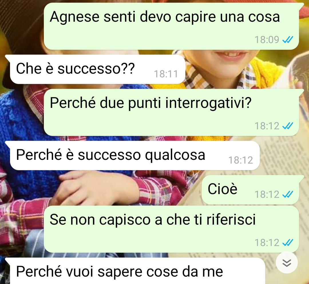 “Buongiorno a tutti voi e a Spunteblu che ha accettato di pubblicare queste righe e la mia storia, una gran brutta litigata e una ancora più brutta scoperta che ho fatto riguardo la mia ragazza, Agnese. Io sono Michele e ho 27 anni, mi avvicino alla laurea e dovrei studiare come un pazzo, ma c’è stato qualcosa che mi ha bloccato. Stavo gironzolando su Instagram e ho trovato una cosa che ha attirato la mia attenzione. Ho voluto farla presente alla mia ragazza e di lì è partito il putiferio. Sulla nostra relazione dovete sapere che lei stava con un ragazzo che idolatrava, anche se lui le faceva le corna con qualsiasi cosa respirasse e nel giro delle amicizie lo sapevano praticamente tutti, ma secondo me pure lei lo sapeva sotto sotto, ma lo nascondeva a se stessa. Io, che non ho alcuna intenzione di beccarmi le corna e di nascondere nulla a me stesso per stare con una persona, ho voluto affrontare la situazione. Sono un po’ paranoico a volte dati i suoi trascorsi con sto ragazzo? Sì, ma ne ho ben donde.”