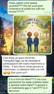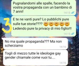 Io non ero tanto convinta ma Giulio scalpitava. Accetto. Non lo avessi mai fatto…dopo un po’ guardando il cellulare vedo che il padre ha postato una stories su whatsapp. La apro…e per poco non svengo! Ora io vi lascio leggere e vi chiedo se è una cosa normale??? Io voglio chiedere i danni per quello che è stato fatto a mio figlio e mi auguro che questa storia abbia la visibilità che merita affinché cose come questa non accadano mai più!!!😩”