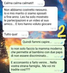 Io all’inizio non ero tanto dell’idea che stringessero amicizia ma poi ho pensato che il bambino non ne poteva niente se aveva una famiglia.. strana.
