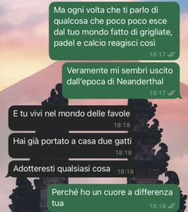 Leggi le ultime storie I piatti della colazione Il papà della sposa Il tavolo per la casa nuova Il mio Ken La proposta di matrimonio sbagliata La sua decisione Ti prego mentimi Rotoli e tradimenti Cose personali Il completino Lo snack della discordia Billo il gallo L’educazione alimentare L’andrologo e il cacciatore Piatto con sorpresa Non ti amo più Mario l’idraulico Matrimonio complicato Senza preavviso Il periodo di prova