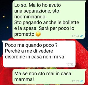 Ma dopo la separazione, un lavoro sottopagato e un affitto che non potevo più permettermi, non avevo alternative. Lei mi ha detto “vieni, ci stringiamo un po’, ma ce la facciamo”. Invece è stato l’inizio di un altro incubo. Ogni giorno una frecciata, un commento sul mio aspetto, sul fatto che “alla mia età lei aveva già due figli e una casa comprata”.