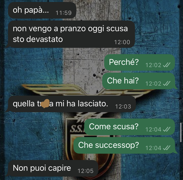 Qualche giorno fa, mi ha scritto. Un messaggio come tanti, su WhatsApp, mentre io e la mia compagna lo aspettavamo per pranzo.