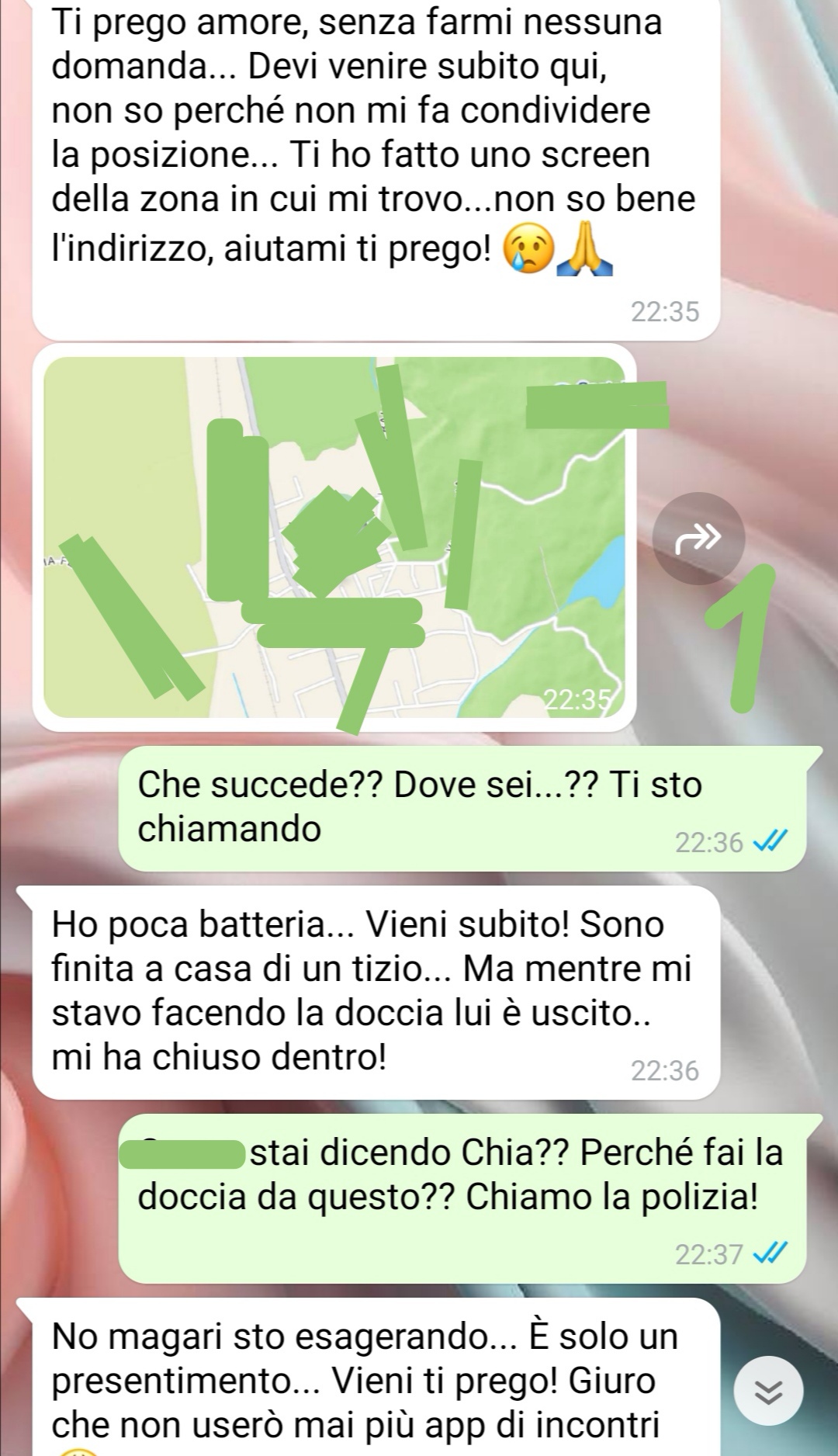 Peccato però che verso le 22:40 circa ricevo uno strano messaggio proprio dalla mia fidanzata. Io ero mezzo addormentato davanti alla tv.