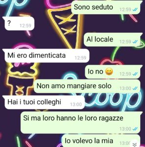 “Mi chiamo Giuseppe e per anni ho sofferto la solitudine, sono stato solo e vi assicuro che la solitudine ha il suo peso. Si dice che una donna impegnata è più stressata e la vive peggio di un uomo, forse è vero, ma l’uomo da solo è meglio se non ci sta perché sono stato davvero male. In ogni caso non voglio parlarvi di quel capitolo della mia vita, ma di quanto io sia stato felice quando ho conosciuto e mi sono fidanzato con Anna. Io ho 30 anni adesso, fatti più o meno da poco, e lei invece ne ha 35, è un po’ più grande di me. Si potrebbe pensare che io mi sia accontentato, che pur di non restare solo mi sono messo con lei, ma non è così. Ho comunque una dignità e ho fatto la mia scelta consapevolmente e coscienziosamente. Forse sarei dovuto essere più cauto nel mettermi con lei, perché ora soffro e lo faccio per una cosa che è di una cattiveria unica. Lei è sicuramente un tipo superficiale, ma non credevo così tanto. Un giorno, dato che stiamo a distanza, lei doveva venire da me, ma poteva arrivare solo la sera perché prima doveva lavorare. Io, invece, dovevo festeggiare il compleanno del mio capo ed ero in un locale a pranzo, lì parliamo e iniziano i drammi.”
