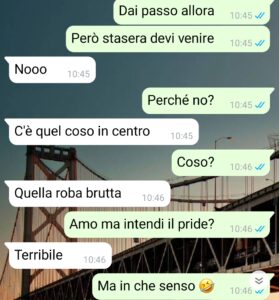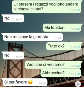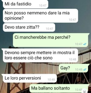 “Ciao, sono, diciamo, in una brutta situazione con la mia ragazza. Mi vergogno anche parecchio a condividere con tutti questa chat, perché lei ha dimostrato di avere una mentalità chiusa e becera come pochi, persino per certi versi e aspetti è anche peggio di mia madre, che da questo punto di vista è davvero imbarazzante, ma almeno lei ha la sua età, invece Liliana, la mia ragazza, è ovviamente molto più giovane, quindi dovrebbe pensarla come tutti alla nostra età. Invece no e questa cosa mi ha creato uno scompenso perché io voglio stare con lei, ma non voglio stare con una persona che sputa sentenze e dimostra un tale odio e una tale ignoranza verso le altre persone.