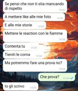 Leggi le ultime storie Un servizio anti tradimento Una decisione difficile La yes friend Tradimento astrale Beccata La pasta Riscatto vegano La nuova fidanzata Veganuary L’abito panna Il mio ragazzo Cena tra amici Il fidanzato abusivo La neo mamma Trasloco forzato Guido e il conto comune L’asilo di Maya Non partorisco più Il naso nuovo Questione di bisogni