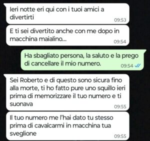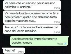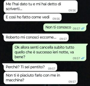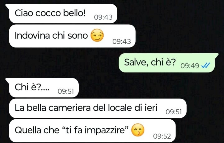 “Ciao Spunte Blu, sono un uomo disperato che ha commesso un terribile sbaglio e ora non mi resta che affrontare le conseguenze di quello che ho combinato ieri notte. Vi mando questa chat perché in fondo spero che mia moglie o qualche sua amica o nostro conoscente possa vederla, risalire a me e farle la spia, così mi tolgo questo peso di doverle dire direttamente a quattr’occhi quello che ho fatto perché tanto lo so benissimo che prima o poi dovrò dirglielo o comunque la cosa salterà fuori. Come se non bastasse, sto anche subendo le molestie e i ricatti della terza persona coinvolta in questo mio sbaglio e lei mi sta obbligando a incontrarla di nuovo stanotte. Io non so cosa fare, credetemi, sono in panne, disperato e non so come agire. Se dirlo subito a mia moglie, se pregare che lei o qualche amica legga questa mia confessione indiretta qui grazie a voi amici di Spunte, oppure se presentarmi a questo appuntamento ricattatorio con quest’altra donna e poi da lì capire come comportarmi e come risolvere. Ovviamente voglio i vostri consigli ma vi prego ragazzi vi supplico, non mi attaccate anche voi e se potete per favore evitate di insultarmi dandomi magari del pervertito maniaco. Io purtroppo quando bevo tanto non capisco più niente, è un mio grosso limite e sì, con mia moglie in questo periodo stiamo attraversando una crisi grossa e mi sento molto depresso, questo è vero, ma non lo dico per giustificarmi perché so benissimo che sono nel torto marcio, mi sono comportato da vero verme e quello che ho fatto non ha scuse, lo so quindi vi prego non ricordatemelo anche voi.”