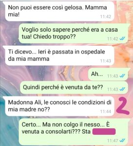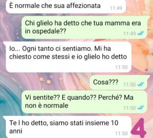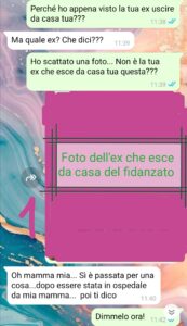 “Salve, mi chiamo Alice e l’altro giorno ho avuto la conversazione più assurda che potessi immaginare. L’ho avuta con il mio fidanzato e tutto è cominciato quando, mentre mi stavo recando dal dentista, sono passata davanti al palazzo dove abita il mio ragazzo e ho visto la sua ex che usciva dal portone. Mi sono nascosta dietro una macchina e l’ho fotografata. Subito dopo ho scritto a lui che ha inizialmente quasi negato, poi ha dovuto ammettere perché gli ho mandato la foto che io avevo già fatto per tutelarmi.