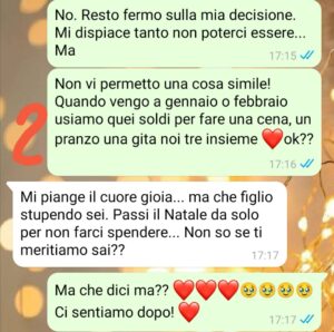 Praticamente le dico che è impossibile che torni e che questo Natale dovremo passarlo separati.