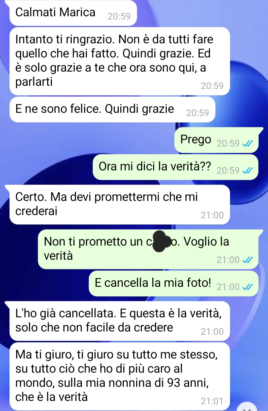 Mi chiamo Marica, sono una ragazza giovane, col suo lavoro, con i suoi hobby e senza, lo so, fa strano nel 2026, un fidanzato al suo fianco. Sono io di gusti difficili? Oppure mi capitano solo casi umani? Oppure la sfortuna per me è sempre dietro l’angolo? Non lo so. Leggete e giudicate voi. Ad ogni modo, mi stavo sentendo con questo ragazzo e anche se comunque era da poco, stava andando bene direi, un normale inizio di relazione/frequentazione con una persona a primo impatto semplice ma giusta per me. Il problema è ciò che è successo qualche giorno fa. Ero a casa, tranquilla, e mi scrive lui, molto di fretta e molto scosso (così pensavo, aveva il caps lock) dicendomi che è dalla polizia. Non solo. Mi dice che aveva bisogno urgente di una foto dei miei piedi e le due dinamiche sembravano collegate. Ero spaventata. Che dovevo fare? L’ho scattata e l’ho mandata.”
