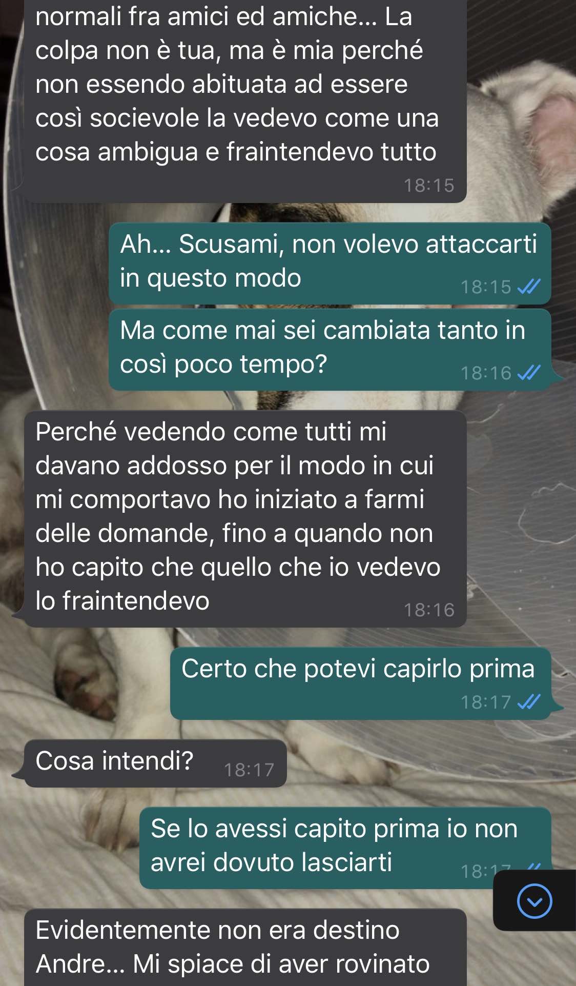 Io ero convinto che stesse prendendo in giro Gianluca solo per farmi ingelosire, ma quando ho iniziato a parlarci mi sono sentito strano, come se qualcosa dentro di me volesse trattenere la mia parte vendicativa. La vedevo diversa… Sembrava più serena dal modo in cui parlava.
