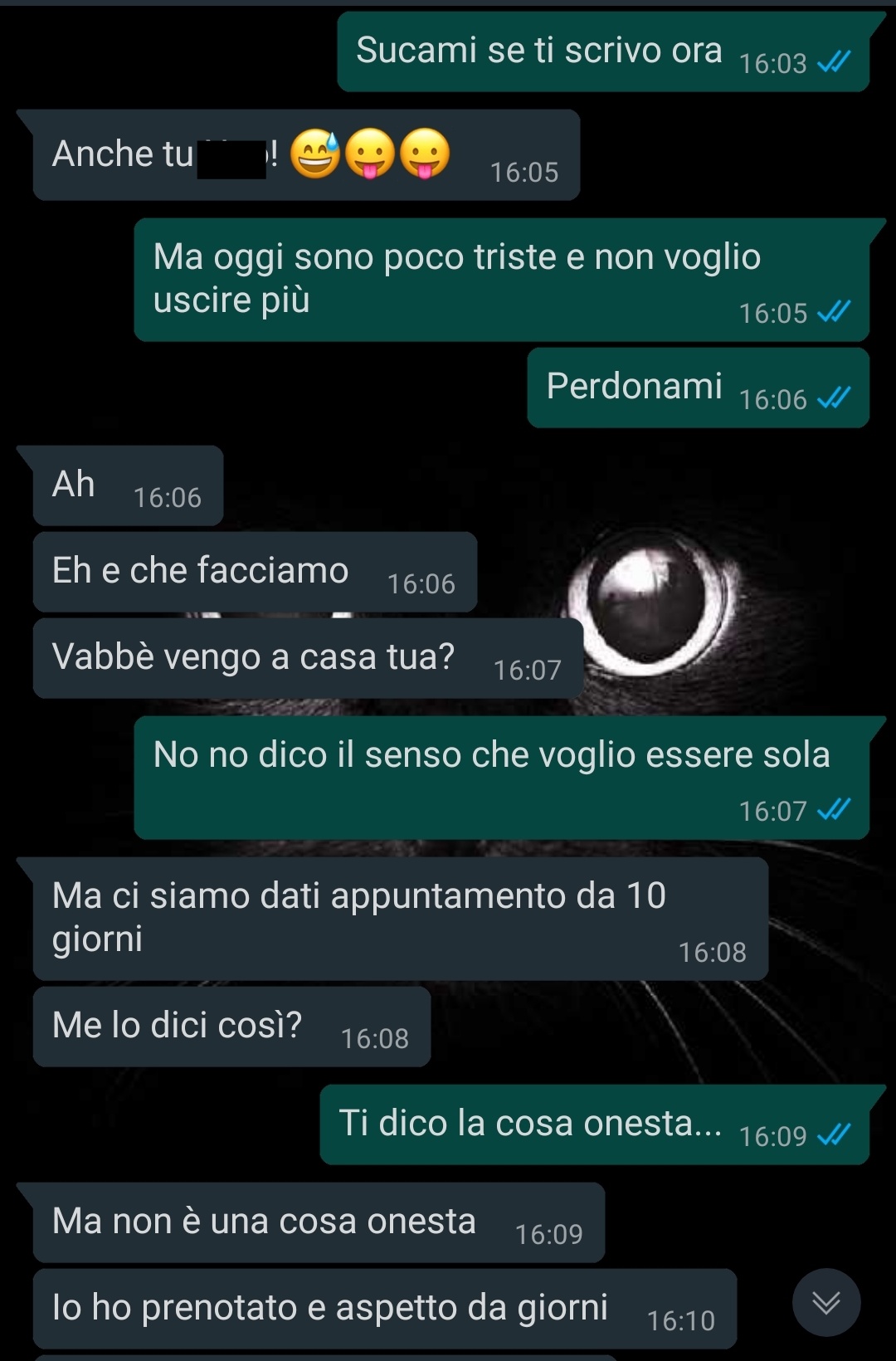 “Queste due chat avevano stancata e delusa, perciò ho scritto all’uomo dell’appuntamento di sera (lo chiamo M.)”