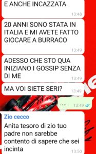 Insomma… chi di voi non ci rimarrebbe male di scoprire queste cose così, all’improvviso, e dette anche con rancore? È vero, lo ammetto, non sono praticamente andato mai a trovare Anita in Inghilterra perché la vita e il lavoro che ho qua mi impediscono di fare trasferte durante l’anno, e le vacanze le spendo per stare con la mia compagna. Però la verità è che anche lei ha scelto di mentirmi. Da anni, a quanto pare.