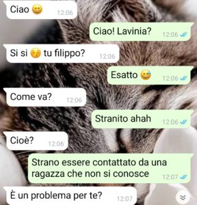 “Ciao, il mio nome è Filippo e ho avuto il primo approccio a una ragazza più disastroso di quanto possiate immaginare. In realtà non è colpa mia, ma decisamente sua, davvero. O ancora di più delle persone che ci hanno accoppiati, poiché tutto nasce dal fatto che io mi sono lasciato ormai qualche mese fa e ho sofferto tanto per questa cosa, perché sono stato con la mia ragazza (ex ragazza) per anni e anni. Quindi loro, che conoscevano questa persona, hanno ben pensato di farmela conoscere, ma non con un’uscita tutti insieme, ma dicendole di scrivermi e che, siccome pure lei si era da poco lasciata e cercava urgentemente (così mi era stato detto e infatti mi sembrava strano questo urgentemente) un nuovo fidanzato, avevano pensato che io potessi fare al caso suo.