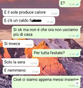 “La mia relazione è fresca fresca, proprio nuova e già ha affrontato un gran bel problema. Non so nemmeno se questa relazione iniziata da poco sia effettivamente ancora una relazione, da parte mia mi sento di voler perdonare, ma non saprei come evolverà la situazione. Io sono Alessandra, ho 26 anni, vivo con i miei genitori e non mi vergogno a dire che siamo piuttosto benestanti. Non sono una figlia di papà, anzi sono una che lavora e che guadagna ciò che ha con il sudore della fronte, ma è anche vero che i miei guadagnano davvero molto bene e possiamo permetterci delle libertà che altri magari trovano proibitivi. Come il mio fidanzato, che non si è mai lamentato fino a ora di questa nostra differenza. Io non l’ho nemmeno fatta notare, anzi sono una che non si vanta mai di ciò che ho e gli altri no, ma questa volta ho solo fatto una battuta sulle temperature molto alte che ci sono già qui al sud e lui non l’ha presa bene. Di lì abbiamo iniziato a litigare e lui si è comportato davvero molto male.”