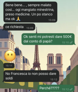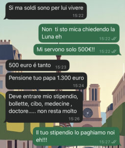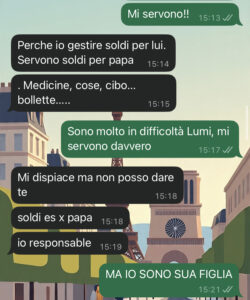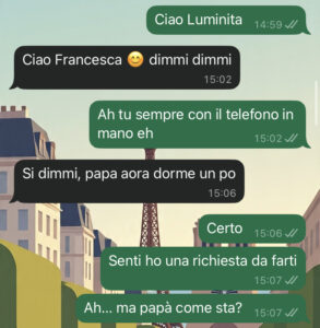Io vivo all’estero da qualche anno. Non è stata una scelta semplice, ma lavoro qui, la mia vita ormai è qui. Mio padre invece è rimasto in Italia. È anziano, malato, non autosufficiente. Mia madre se n’è andata tanti anni fa e lui è completamente solo. Non ha fratelli, non ha sorelle, niente rete familiare intorno. Ci sono solo io.