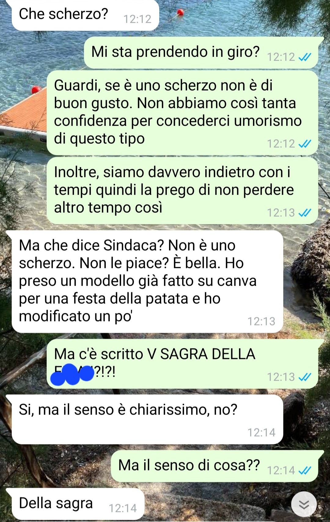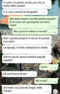 “Da poco, sono sindaco (o sindaca, come preferite) di un paese, di cui non farò il nome, famoso per la sua produzione di patate, veramente molto buone e di vario tipo. Lo so, non è questo grande vanto, ma sicuramente è meglio di niente. Ovviamente non è per questo che ho deciso di candidarmi. Penso ancora che la politica possa fare la differenza e che, soprattutto nelle realtà medio-piccole come la nostra, avere una guida capace davvero di indirizzare la popolazione verso ciò che è giusto e soprattutto verso le novità moderne, può essere d’aiuto. Ma non voglio parlare di politica qui. Per ovvie ragioni, in questo paese facciamo, anche più volte all’anno se non sbaglio, una sagra in cui viene servito un po’ di tutto ma anche e soprattutto patate cucinate in vari modi. Per la nostra comunità è un evento importante ed è gestito in parte dal comune. Ho così incaricato Roberto, un uomo diciamo particolare del paese che già lo scorso anno, a suo dire, si era occupato di parte dell’organizzazione, di creare una locandina per l’evento in modo che la potessimo stampare e diffondere. Non l’avessi mai fatto…”