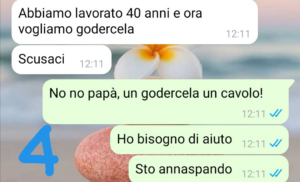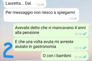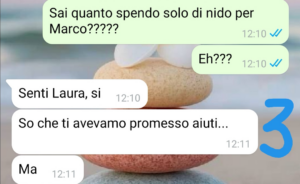 “Non avete idea di cosa mi è successo negli ultimi mesi della mia vita. Comincio dal fatto più eclatante, ma che non è il motivo della chat che mando: dopo 6 anni di matrimonio e tre di fidanzamento, con due bambini, una casa con mutuo e un’attività insieme, mio marito mi ha lasciata dall’oggi al domani. Sì, così mi sono ritrovata con due bambini piccoli, tra cui uno che va al nido ancora, a cui badare…e l’altra fa solo la materna, un’attività che è una piccola gastronomia nel nord italia e tanti tantissimi problemi.
