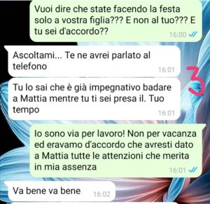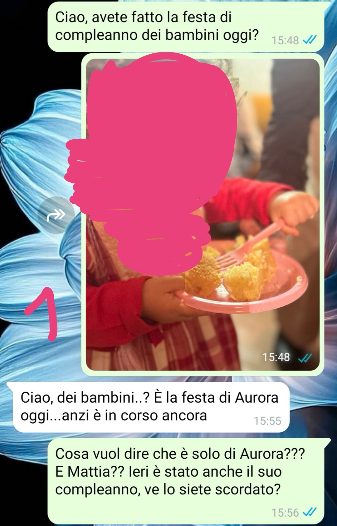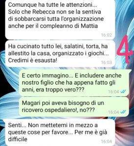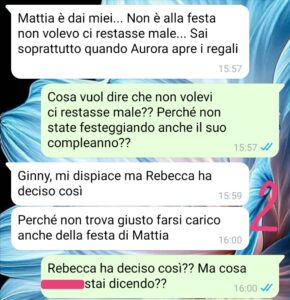 apro whatsapp e vedo l’anteprima delle stories di Rebecca…e mi sembra che ci sia una festa di compleanno in corso. Penso che abbiano deciso di festeggiare i due bambini e scrivo al mio ex per chiedere se sia effettivamente così, anche perché dalle foto che vedo mi sorge un dubbio che ho bisogno di fugare immediatamente…e guardate cosa vengo a scoprire ♀️”