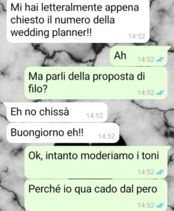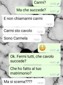 Premetto che io e Carmela ci conosciamo da 7 anni, da quando ho cominciato a uscire nella comitiva di un’amica che abbiamo in comune. Carmela si è appena sposata e con onestà dico che il suo matrimonio è stato organizzato egregiamente. Tutto era ben disposto, addobbi bellissimi e organizzazione perfetta. Ecco perché alcuni giorni dopo le ho chiesto il numero della wedding planner che l’ha seguita.