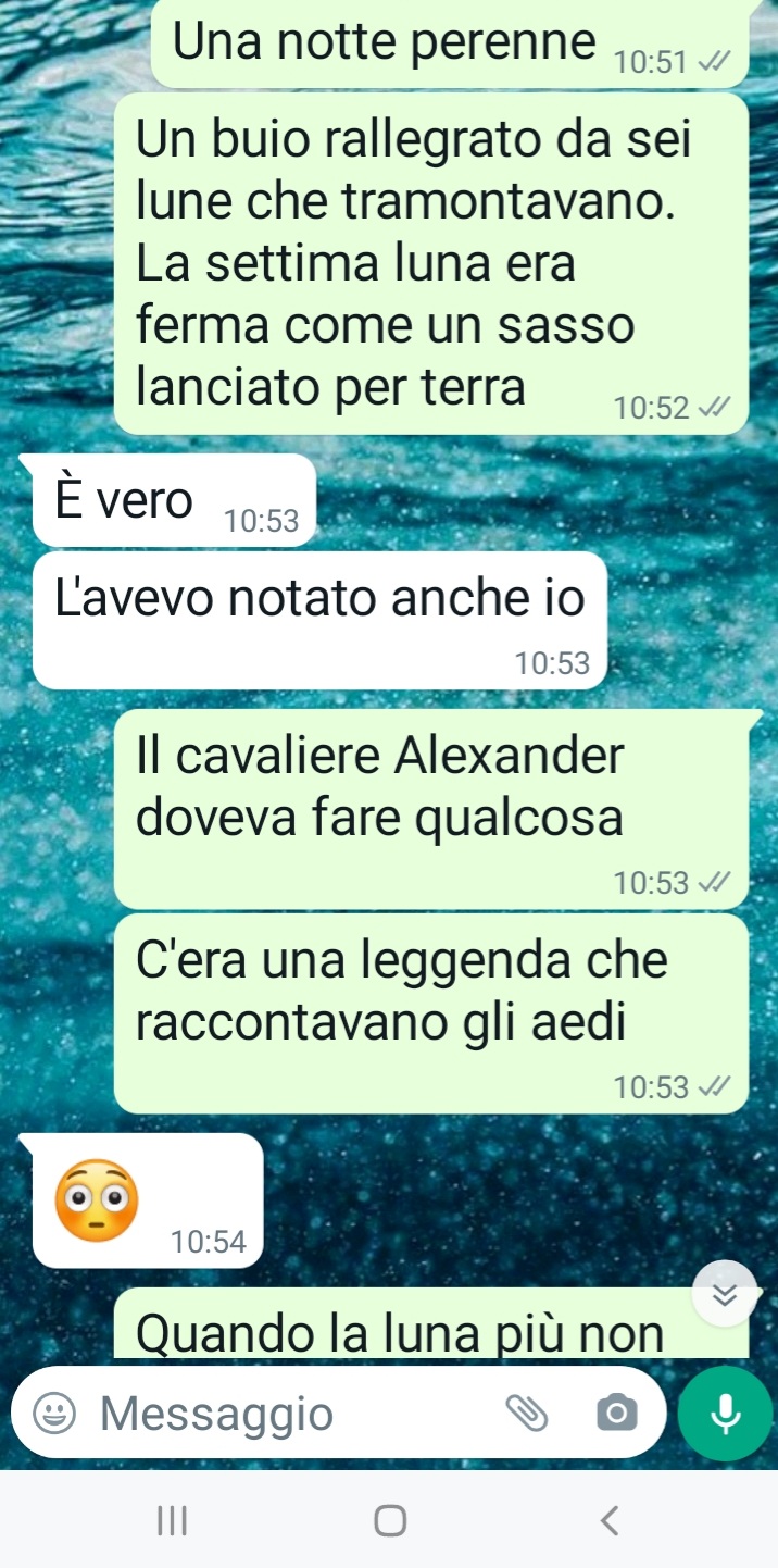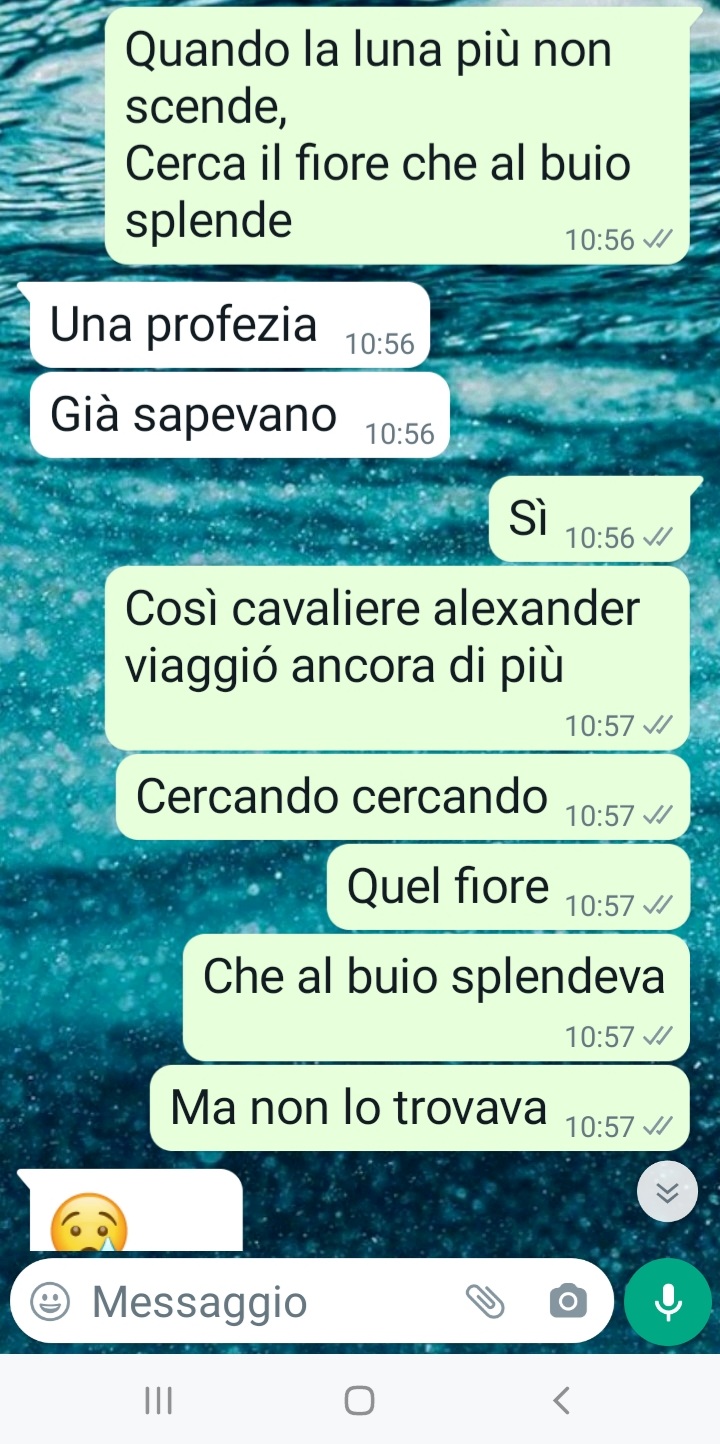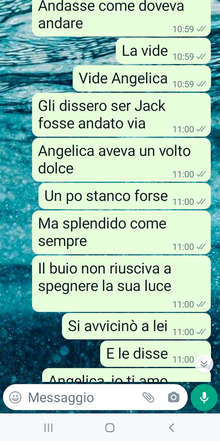 Capita, no? Come diceva Forrest Gump: shit happens, tutto qui. L’amore è una delle soluzioni ai problemi. E anche la notte perenne più buia può trasformarsi in un giorno nuovo con una nuova alba, nuove sfide e nuove speranze. Io e Angelica vi inviamo questi screen: è la nostra storia, la nostra storia d’amore, una come tante, in fondo.