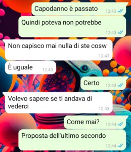 “Ciao a tutti, buon anno nuovo e spero che abbiate passato bene queste giornate. Io no, purtroppo, perché ho beccato una persona terribile che mi sta rompendo le scatole, se così possiamo dire. L’ho conosciuta poco più di una settimana fa, abbiamo chattato e mi ha dato il suo numero, io le ho scritto subito e abbiamo parlato tanto. Pensavo che fosse una che voleva conoscermi, pensavo che fosse una ragazza carina con cui avere una relazione dopo tanto tempo che ho passato solo e sconsolato, e probabilmente sapeva in qualche modo di questa mia necessità di affetto e ha giocato le sue carte a suo favore. Fatto sta che proprio il giorno dopo il primo dell’anno, arriva e mi fa una strana richiesta. Finalmente vuole che ci vediamo, io ero interessato, ma il modo in cui mi ha fatto questa richiesta ha fatto scattare un campanello d’allarme e già subodoravo che c’era qualcosa di strano, qualcosa di sbagliato che non sarebbe dovuto succedere. Questo perché la ragazza che mi aveva contattato, la Federica che mi aveva detto essere interessata a me nascondeva un segreto.”