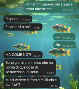 Io gli ho preparato una zuppa bellissima e buonissima, ci metto tempo, cura, sembrava un’opera d’arte. Gliela mando tutta felice, aspettandomi almeno un “wow”, un “che carina”, un “grazie amore”.