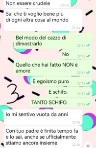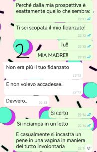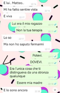 “Non so cosa mi ha fatto più male: scoprire che il mio fidanzato era andato a letto con un’altra, o scoprire che quell’altra era mia madre. Dopo il disastro con Matteo, ho avuto bisogno di risposte. E ho deciso di cercarle direttamente da lei. Pensavo, in fondo, che una madre non potesse mai davvero superare certi limiti. Mi sbagliavo. Quello che leggerete è lo scambio più amaro della mia vita. E anche l’ultimo. Perché certe ferite non si ricuciono. Si lasciano aperte. Così fanno più rumore ogni volta che qualcuno prova a parlarci sopra.”