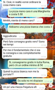 “Sono arrabbiato con il mondo, con il mondo e con il signore che, pochi giorni fa, mi ha rovinato la vita, appena questa ha cominciato a sembrarmi decente. Mi chiamo Gabriel, ho origini senegalesi ma ci tengo a dire che sono italiano, nato e cresciuto in Italia. Vivo a Roma da alcuni anni, so che è una città difficile, sia per com’è fatta, sia per le persone che la vivono. Stavo cominciando ad avere però delle speranze quando qualche mese fa sono stato assunto in questa pizzeria (una sorta di prova pagata di sei mesi) in cui mi occupavo un po’ di tutto, principalmente, nell’ultimo periodo, di prendere gli ordini telefonicamente o via messaggio, e poi delle consegne. L’altra sera, avevamo aperto da poco e mi scrive un signore che vuole ordinare una pizza. Un po’ strano lui, ma niente di così strano da allarmarsi e quindi ho preso l’ordine, come sempre, e tutto sembrava essere andato liscio. Peccato che non era così. Non aveva idea di quello che stava passando nella mente di questo squilibrato, e soprattutto delle gravi conseguenze che avrei dovuto pagare.”