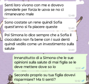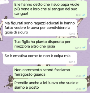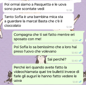 Quando ci siamo separati però ci siamo ripromessi di fare sempre il bene di Sofia, perché lei è innocente. Quindi se Roberto passa Natale con loro, Santo Stefano lo passa con noi, idem per Pasqua e Pasquetta.
