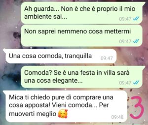 Resto quindi spiazzata. Ma lui sembra tenerci tanto alla mia presenza e allora penso che potrei accettare…